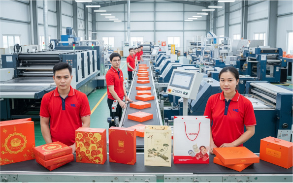 VIỆT UK là thương hiệu hoạt động trong lĩnh vực thiết kế và in ấn đa dạng các sản phẩm phù hợp với nhu cầu của mọi khách hàng. Chúng tôi sở hữu 2 nhà xưởng quy mô rộng lớn với tổng diện tích trên 2000m2. Sở hữu chuỗi quy trình khép kín chuyên nghiệp, chúng tôi cung cấp giải pháp dịch vụ bao gồm từ thiết kế, in ấn đến gia công và hoàn thiện sản phẩm cuối. Với sứ mệnh giúp các thương hiệu tạo sự khác biệt và nổi bật trên thị trường thông qua các ấn phẩm truyền thông, bao bì sản phẩm,…Chúng tôi cam kết và luôn phấn đấu để mang lại những sản phẩm hoàn thiện chính xác nhất với dịch vụ hỗ trợ tận tình.